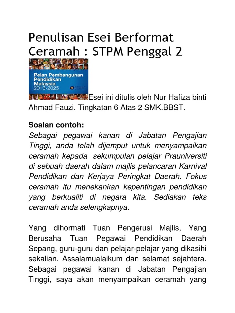 Penulisan Esei Berformat Ceramah Stpm Penggal 2